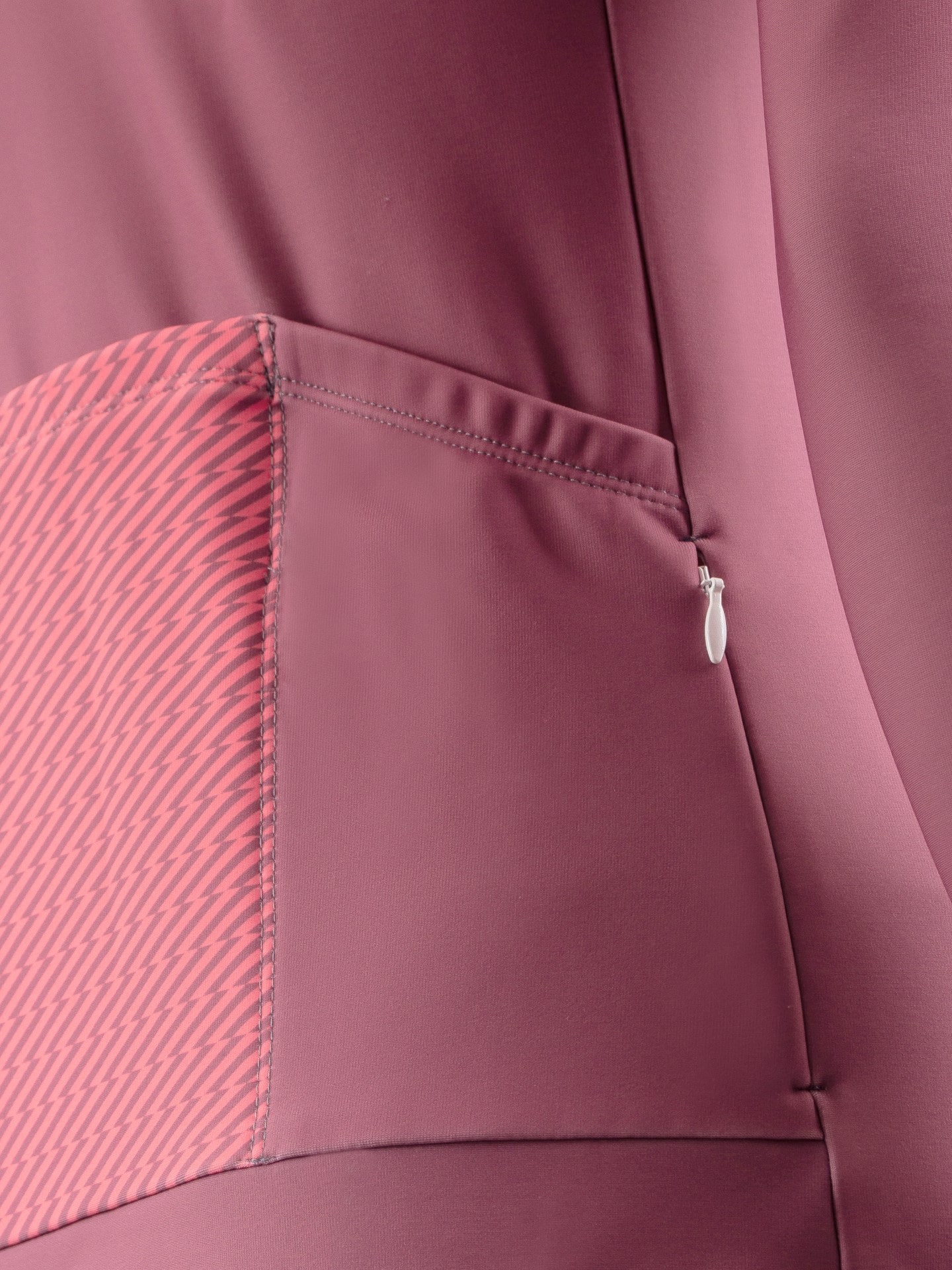 Púrpura sweatshirt with long sleeves with a distribution lock at the front. Three pockets and one additional zipper on the back. It is made of smooth, flexible material, with a pleasant nap from below. At the bottom, finished with silicone tape, thanks to which it is not pulled during movements. The structure matched, adheres perfectly to the body during training.