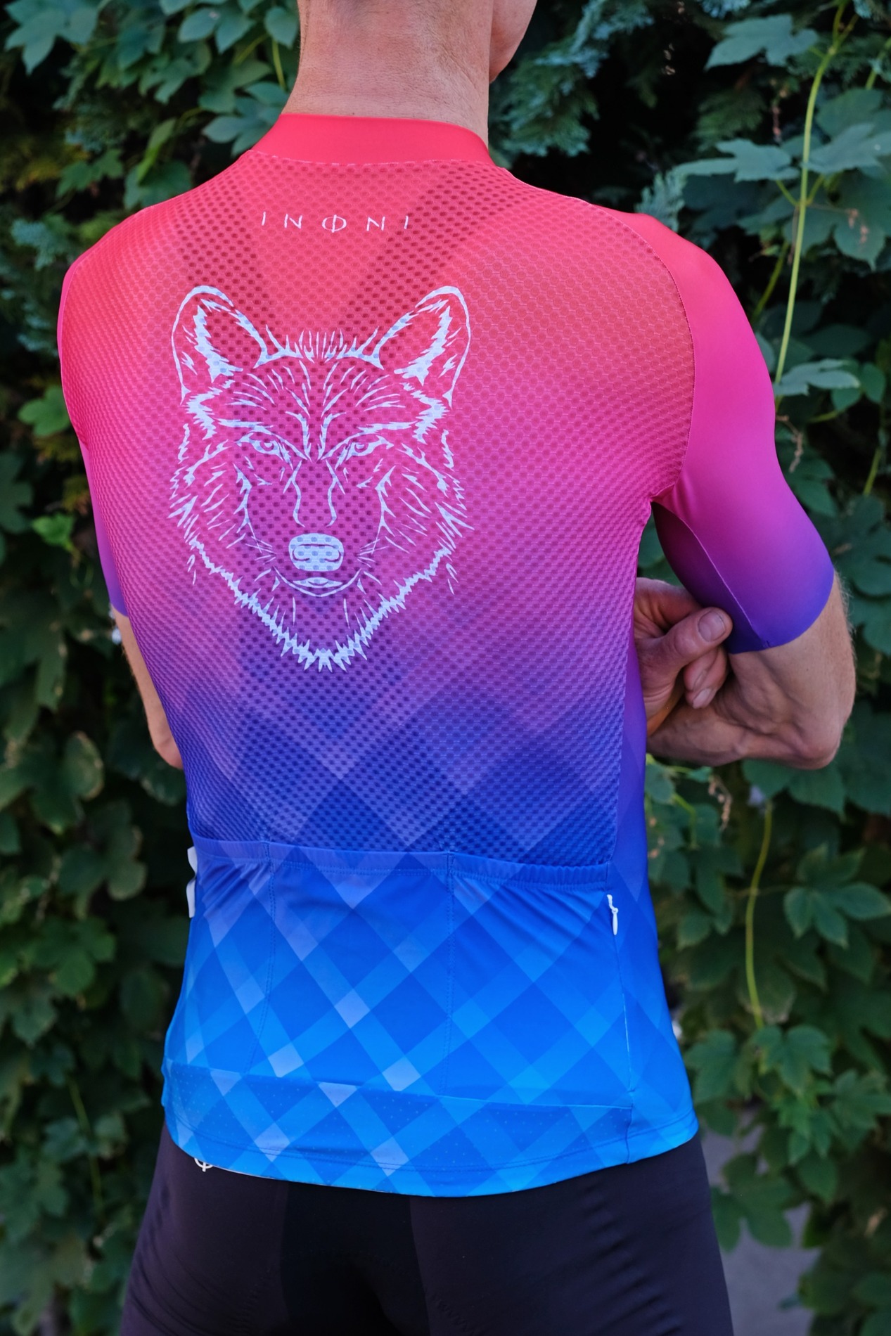 Koszulka kolarska Kaszubski Wilk, konstrukcja sportowa z panelami bocznymi.
